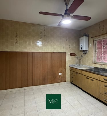 Casa de PB con 2 habitaciones, garage, living comedor, quincho, patio y parrillero. Ubicada en Barrio Matheu.
